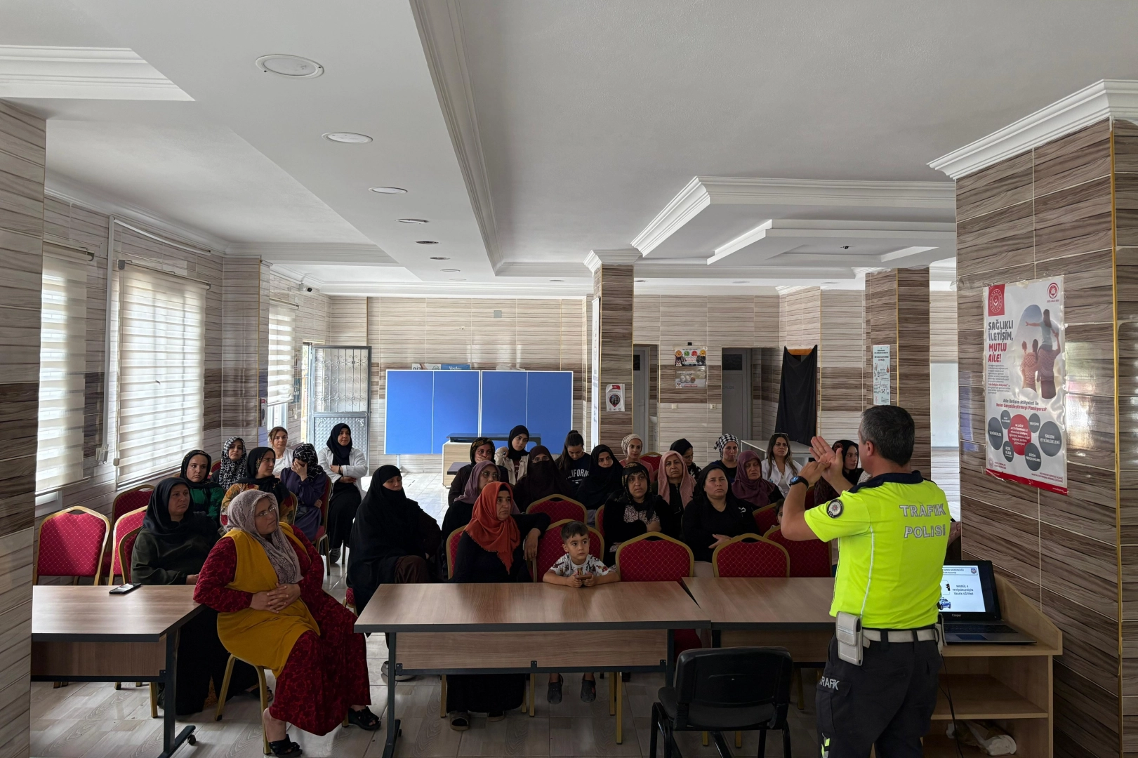 Adana İl Emniyet Müdürlüğü Trafik Denetleme Şube Müdürlüğü ekipleri, trafik güvenliği konusunda farkındalık oluşturmak amacıyla Yüreğir Aile Destek Merkezi ve Çocuk Evleri Koordinasyon Merkezi’nde anneler ve çocuklarla bir araya geldi.