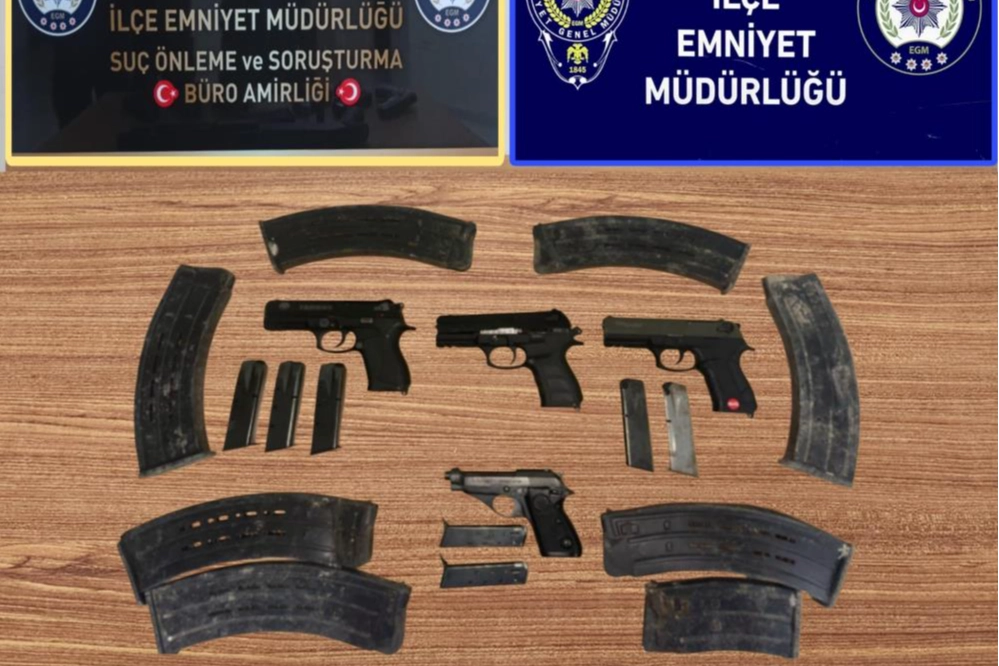 Silah ve mühimmat ele geçirildiOperasyonda 4 ruhsatsız tabanca, 7 tabanca şarjörü, 8 tüfek şarjörü ve 82 mermi ele geçirildi.