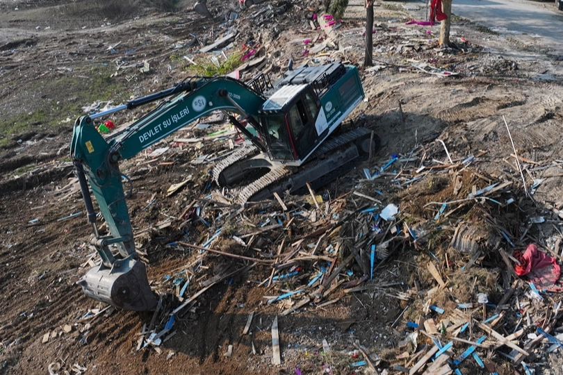 Yıkım çalışmalarının ardından girişe yasaklanan bölgede enkaz kaldırma çalışmaları devam ediyor.DSİ ve Büyükşehir Belediyesi ekiplerince iş makineleriyle yıkılan kaçak yapıların enkazı kamyonlara yüklenerek alandan taşınıyor.