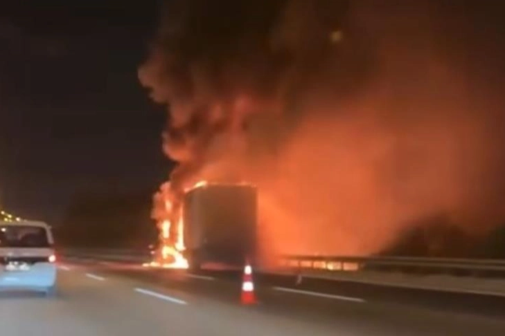 Adana’da otoyolda seyir halindeki tır alev alev yandı.Alınan bilgiye göre, Adana-Mersin Otoyolu Sarıçam mevkiinde seyir halindeki bir tırda henüz bilinmeyen bir nedenle yangın çıktı. Kısa sürede büyüyen yangın, tırı adeta alev topuna çevirdi. İhbar üzerine olay yerine itfaiye ve polis ekipleri sevk edildi. Ekiplerin müdahalesiyle yangın kontrol altına alınarak söndürüldü. Tır kullanılamaz hale gelirken, yangınla ilgili inceleme başlatıldı.