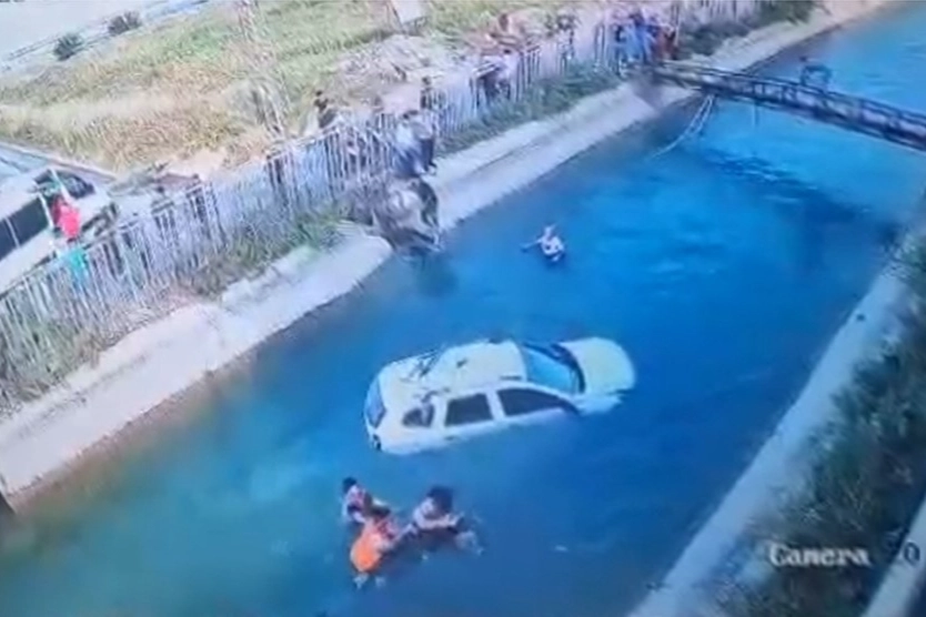 Adana’nın Seyhan ilçesinde sulama kanalına düşen cipteki iki kişi, akıntıya kapılarak sürüklendi. Olay yerine koşan vatandaşlar, suya girerek iki kişiyi kıyıya çıkardı. Kurtarma anları güvenlik kamerasına yansıdı.