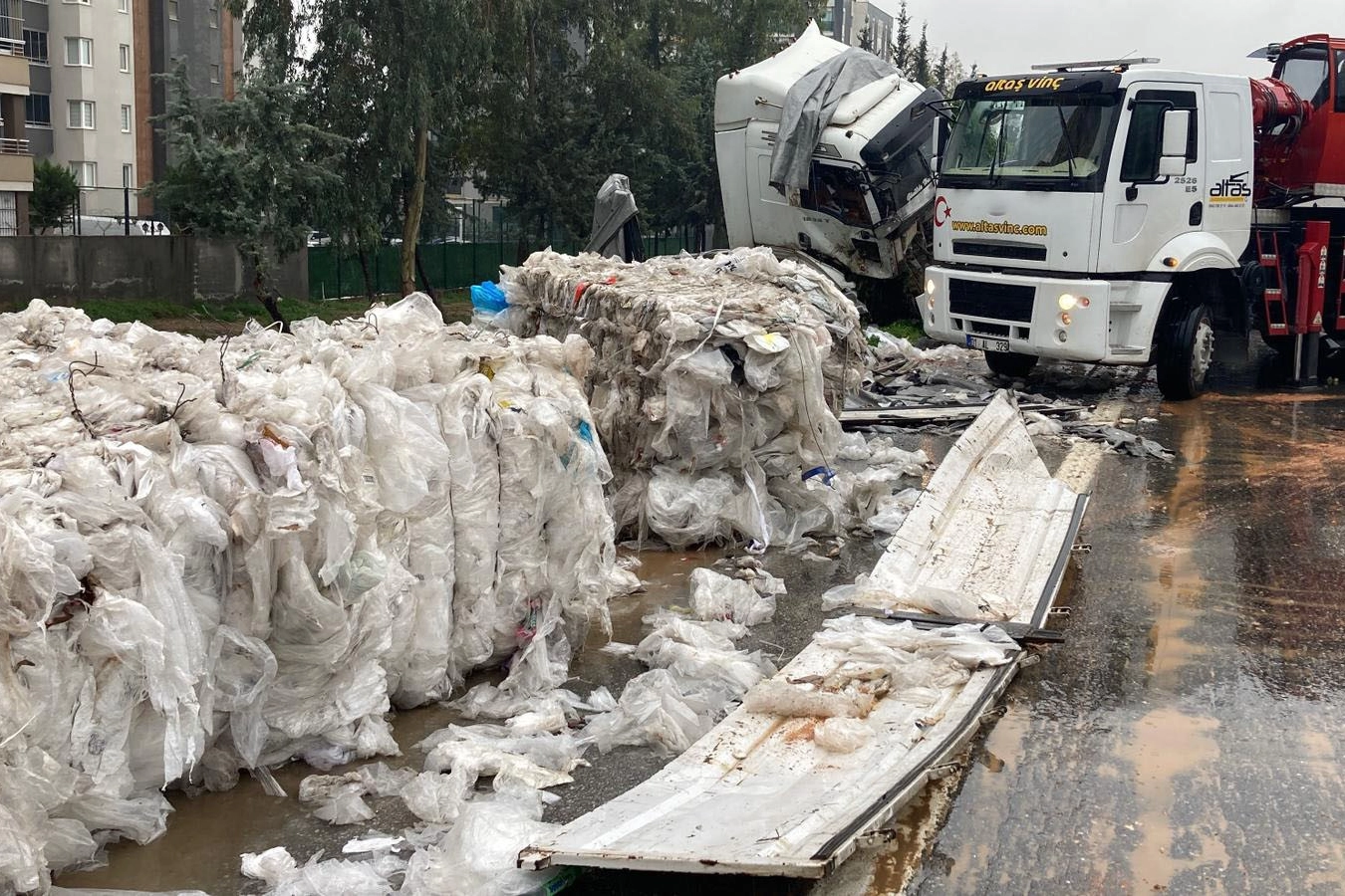 Bariyerlere gerçekleşen şiddetli çarpmanın etkisiyle tırın kasasında yüklü bulunan tonlarca naylon atık asfalta dağıldı. Yola savrulan atık malzemeler nedeniyle Tarsus-Adana-Gaziantep otoyolunun ilgili bölümü geçici bir süreliğine adeta çöp döküm alanını andırdı. Yola saçılan materyaller, diğer sürücüler için tehlike oluşturdu.