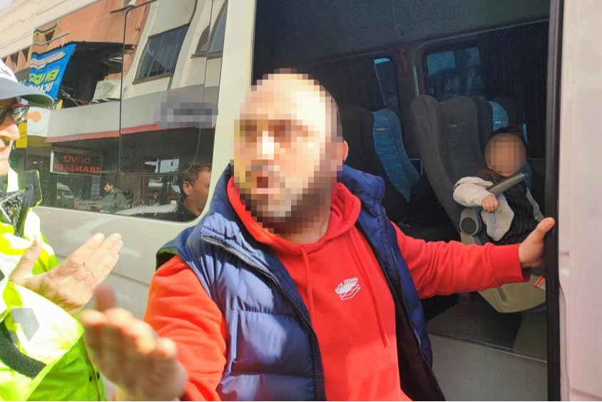Daha sonra sürücünün aracının ön koltuğunda bir çocuğun oturduğunu fark eden ekipler, çocuğun arka koltuğa alınmasını istedi. Bunun üzerine sürücü, "Arkadaşınızla konuşunca bana cephe aldınız" diyerek tepki gösterdi ve çocuğu arka koltuğa aldı. Polis ekipleri çocuğa emniyet kemeri takılması yönünde uyarıda bulununca sürücü araçtan inip kendisini görüntüleyen basın mensuplarına da tepki gösterdi. Sürücü, kameraya vurarak saldırıda bulundu. Yaşanan gerginliğin ardından sürücü, çocuğa emniyet kemeri taktıktan sonra bölgeden ayrıldı.
