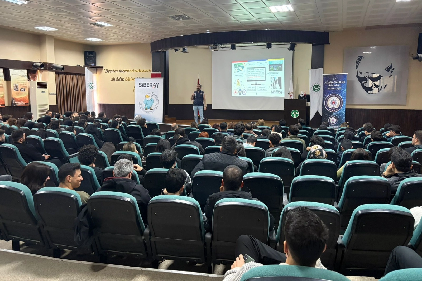 Adana İl Emniyet Müdürlüğü, Çukurova Üniversitesi Meslek Yüksekokulu öğrencilerine güvenli internet kullanımı ve siber güvenlik konularında bilgilendirme eğitimi verdi. Eğitimde öğrencilere oltalama, yatırım dolandırıcılığı, hesap kiralama, kara para aklama, yasadışı bahis ve sosyal medya güvenliği konularında detaylı bilgiler aktarıldı. Öğrenciler, internette karşılaşabilecekleri tehditler konusunda uyarılırken, güvenli internet kullanımı ve risklerin önlenmesine yönelik alınabilecek önlemler hakkında da bilgilendirildi.