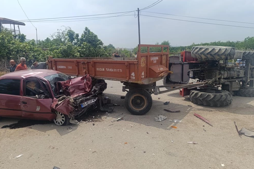 Adana'nın Kozan ilçesinde otomobille çarpışan traktör devrildi, 2 sürücü de yaralandı.Kaza, ilçeye bağlı Varsaklar Mahallesi Sırkıntı caddesi üzerinde meydana gedli. Alınan bilgiye göre, S. S. idaresindeki 01 BAR 439 plakalı otomobil G.B. yönetimindeki 01 AAC 328 plakalı traktöre çarptı. Çarpmanın etkisiyle traktör devrildi. Her iki araç sürücüsü yaralandı. Haber verilmesi üzerine olay yerine sağlık, Cankur ve polis ekipleri sevk edildi. Yaralılara ambulanslarla ilçe devlet hastanesinde kaldırıldı.