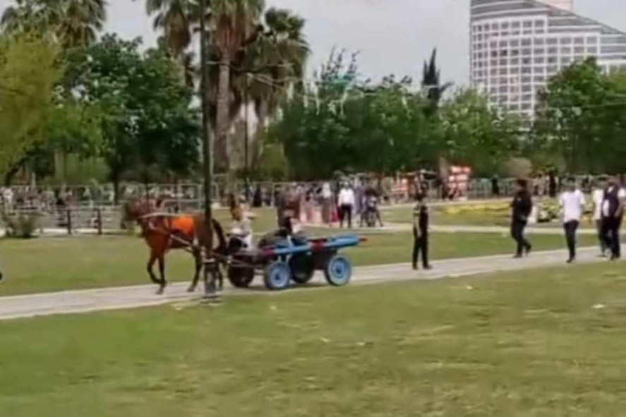 Adana’da 9 günlük bayram tatili boyunca vatandaşlar, hava almak ve çocuklarıyla vakit geçirmek için Merkez Park’a akın etti. Ancak, park içerisinde dışarıdan getirilen atlar ve at arabaları, özellikle yoğun alanlarda büyük bir tehlike oluşturuyor.