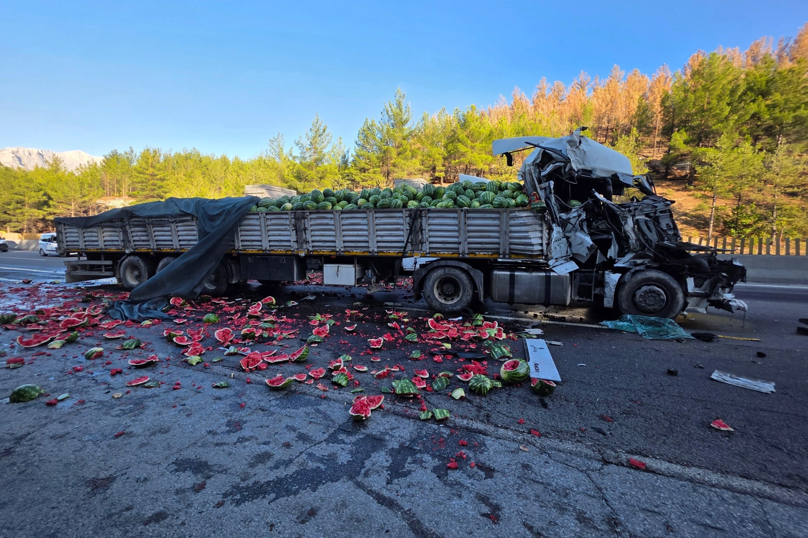 Adana-Pozantı otoyolu Akçatekir mevkiinde kaza meydana geldi. Alınan bilgiye göre, Süleyman Ş. yönetimindeki 73 FE 625 plakalı karpuz yüklü tır, önünde seyreden Vedat G. yönetimindeki 33 ATL 784 plakalı tıra arkadan çarptı. Çarpmanın etkisiyle karpuz yüklü tırda hasar meydana gelirken sürücü Süleyman Ş. kazayı hafif sıyrıklarla atlattı. Karpuzlar ise otoyola saçıldı. Ekipler yolu temizlemek için çalışma başlattı.