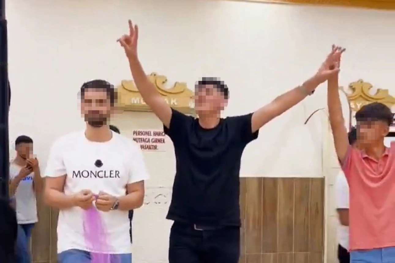 Ağrı'da bir düğün salonunda PKK elebaşı lehine sloganlar atan 7 şüpheliden 3'ü gözaltına alındı. 4 firarinin yakalanması için çalışmalar sürüyor. Ağrı'nın Doğubayazıt ilçesinde bir düğün salonunda halay çekerek PKK elebaşı lehine sloganlar atan 7 kişi, İl Emniyet Müdürlüğü ekiplerince tespit edildi. Şüphelilerden 3'ü yakalanarak gözaltına alınırken, 4 kişinin yakalanması için çalışmaların devam ettiği öğrenildi. Ağrı Valiliğinden konuya ilişkin yapılan basın açıklamasında şu ifadelere yer verildi: “Sosyal medyadaki bazı paylaşımlarda Doğubayazıt ilçemizdeki bir düğün salonunda halay çeken 7 kişilik grubun, PKK elebaşı lehine slogan attıkları tespit edilmiştir. Ağrı Cumhuriyet Başsavcılığı koordinesinde İl Emniyet Müdürlüğümüz ekiplerince “Terör Örgütünün Propagandasını Yapmak (PKK/KCK)” suçundan yakalanan 3 şüpheli gözaltına alınmış, 4 firari şüphelinin yakalanmasına yönelik çalışmalar devam etmektedir. Bölünmez bütünlüğümüze kast eden her türlü terör örgütü ve uzantılarına yönelik mücadelemiz son terörist etkisiz hale getirilinceye kadar kararlılıkla sürdürülecektir.”