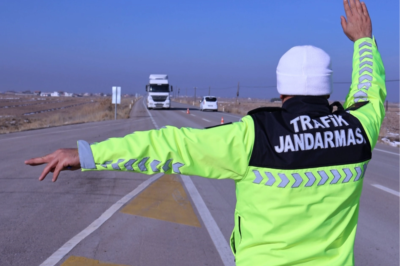 Hava sıcaklığının eksi 9'lara düştüğü Aksaray'da trafik kontrolünü sürdüren İl Jandarma Komutanlığı Trafik Şubesi ekipleri şehir genelinde kış lastiği uygulaması gerçekleştirdi. Ekipler, otoyol başta olmak üzere ilçe, belde ve köy yollarında tüm ticari araçları durdurarak lastik dişlerini ölçüyor.