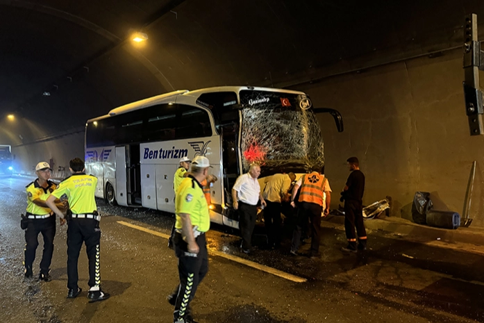 Anadolu Otoyolu'nun İstanbul istikameti Gültepe Tüneli'nde 2 yolcu otobüsü, 1 tır, 1 otomobilin karıştığı zincirleme trafik kazası meydana geldi.