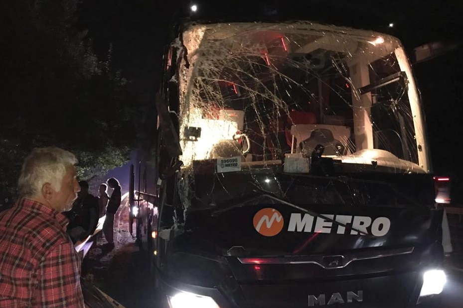 Anadolu Otoyolu Sakarya geçişinde sürücüsünün direksiyon başında uyuya kaldığı iddia edilen Metro Turizm firmasına ait yolcu otobüsü, önünde seyir halinde olan tırın dorsesine çarptı. Faciadan dönülen kazada, 1 kişi yaralandı.