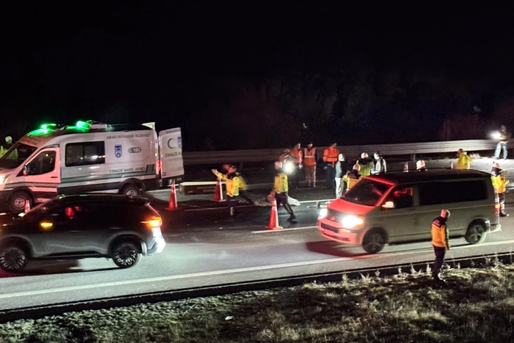 Kaza nedeniyle otoyolda ulaşım tek şeritten kontrollü şekilde sağlanıyor.