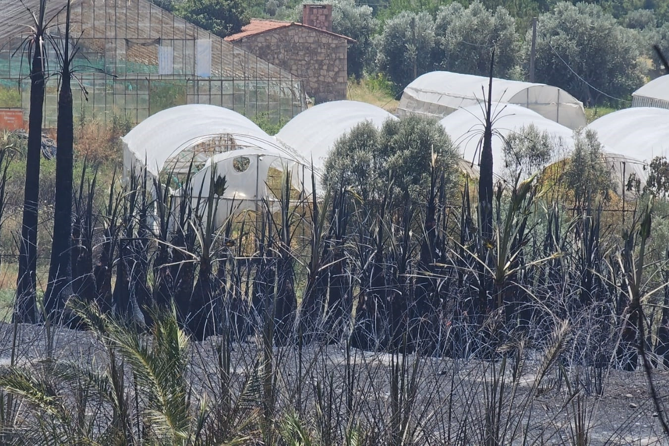 Antalya’nın Aksu ilçesi Kurşunlu Mahallesi Hacılar mevkiinde çıkan yangın, zeytinlik ve palmiye ağaçlarına zarar verdi. Rüzgarın etkisiyle hızla yayılan alevler, bazı naylon seralara da sıçrayarak hasara yol açtı. Yangında zeytinlik ve palmiye ağaçları zarar görürken, rüzgarın etkisiyle alevler çevredeki seralara sıçradı. İlk belirlemelere göre 3 naylon serada hafif hasar meydana geldi. Ayrıca bölgede bulunan bir çadır içindeki malzemeler de yandı. Ekiplerin müdahalesiyle yangın kontrol altına alınırken, bölgede soğutma çalışmaları devam ediyor. Yangının çıkış nedeniyle ilgili inceleme başlatıldı.