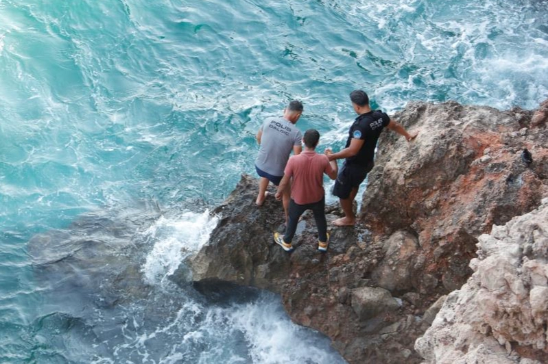 Devreye deniz polisi girdiYaklaşık 45 dakikalık arama çalışmasının ardından Haydar S.'ye falezlerin denize yakın sarp kayalık kısmında ulaşıldı. Ekiplerin Haydar S.'nin bulunduğu noktaya karadan ulaşımın imkansız olması nedeniyle devreye Antalya Emniyet Müdürlüğü Deniz Limanı Şube Müdürlüğü'ne bağlı deniz polisi devreye girdi. Yat Limanı'ndan itfaiye ekipleri ile birlikte botla hareket eden ve Haydar S.'nin bulunduğu noktaya gelen ekipler yarım saatlik çalışma ile şahsı bulunduğu yerden kurtardı. Botla Antalya Yat Limanına getirilen Haydar S. kontrol amaçlı Antalya Eğitim ve Araştırma Hastanesi'ne kaldırıldı.