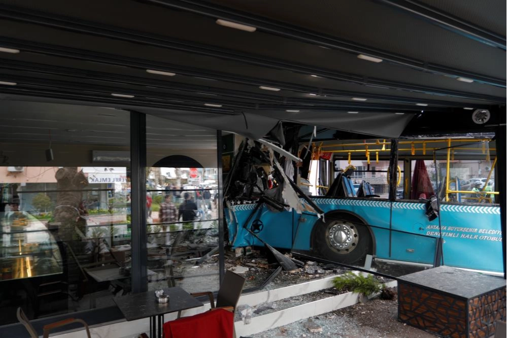 Antalya’da direksiyon başında fenalaşan ve önce park halindeki araçlara çarpan halk otobüsü sürücüsü içerisinde müşterilerin bulunduğu bir kafeteryaya daldı. Kazada kafeterya içerisinde bulunan 2 kişi ve sürücü yaralandı.