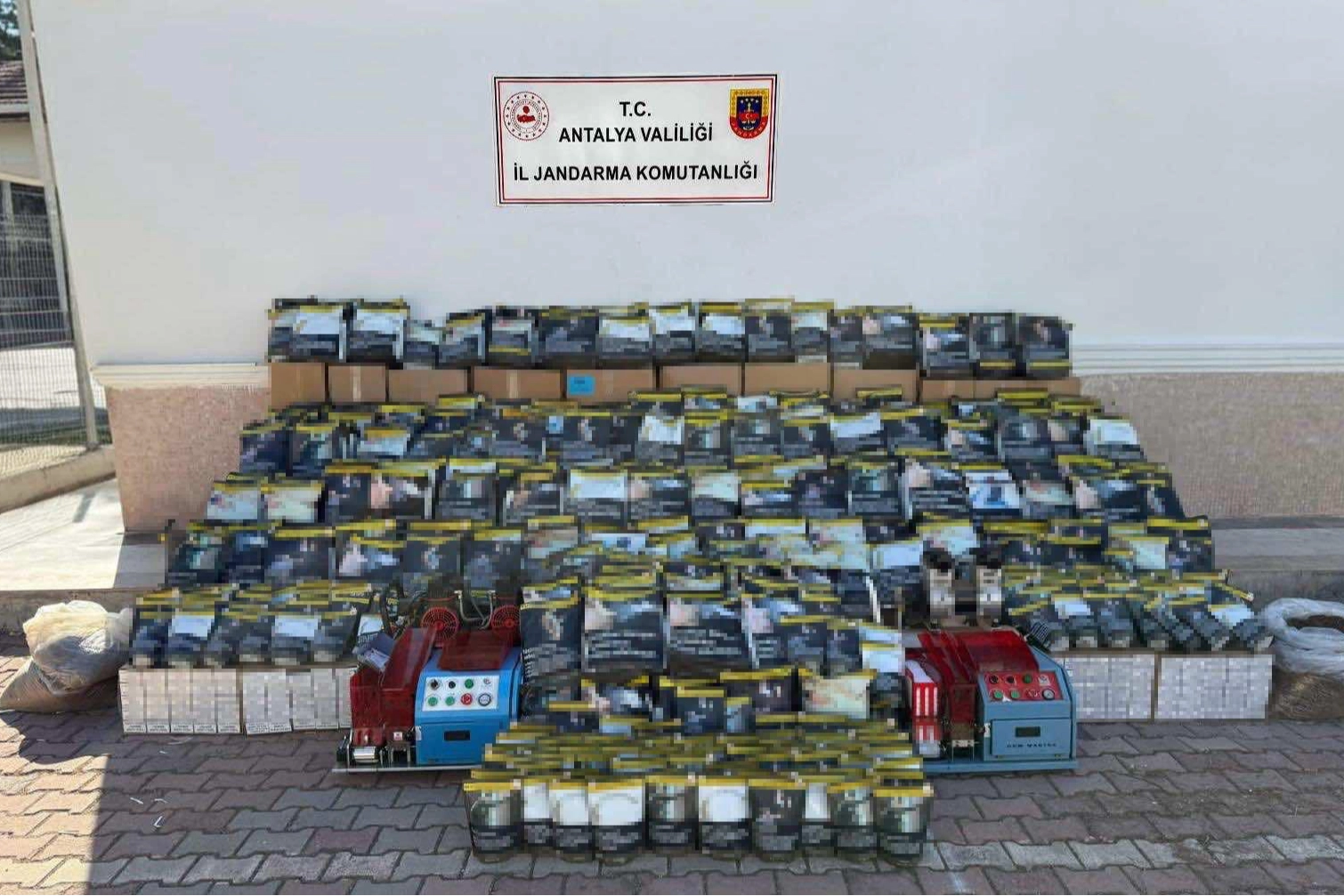 Antalya İl Jandarma Kaçakçılık ve Organize Suçlarla Mücadele (KOM) Şube Müdürlüğü ile Kepez İlçe Jandarma Komutanlığı ekipleri, savcılık talimatıyla yürütülen çalışmalar kapsamında kaçakçılıkla mücadeleye kararlılıkla devam ediyor.Yapılan aramada 2 sigara sarma makinesi, 2 kompresör, 3 ton 150 kilogram kaçak tütün, 60 bin adet sigara tütünü ile doldurulmuş makaron ve 40 bin adet bandrolsüz makaron ele geçirildi. Olayla ilgili soruşturma başlatıldı.