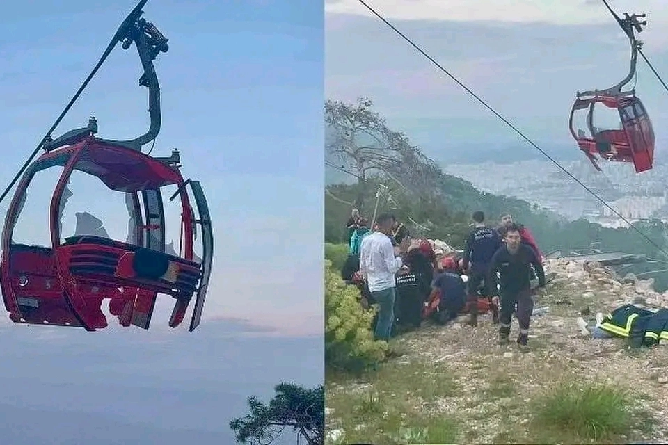 "Bugün Antalya Konyaaltı ilçesinde bulunan Sarısu-Tünektepe teleferik hattını taşıyan direklerden birinin devrilmesi sonucu vagonlardan biri kayalık bölgeye düşmüş; teleferikte bulunun 1 vatandaşımız maalesef hayatını kaybetmiş, 7 kişi ise yaralanmıştır.