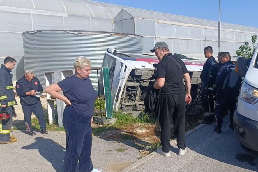 Antalya’nın Manavgat ilçesinde havalimanından yolcu alan tur midibüsü kontrolden çıkarak devrildi. Kazada ilk belirlemelere göre 18'i Rus uyruklu turist olmak üzere 19 kişi yaralandı.Kaza, Gündoğdu Mahallesi Yörük Mustafa Bey Bulvarı’nda sabah saatlerinde meydana geldi. Alınan bilgiye göre, havalimanından Rus turistleri alan 07 AVN 799 plakalı tur midibüsü, henüz ismi öğrenilemeyen sürücüsünün direksiyon hakimiyetini kaybetmesi sonucu muz serasının yanına yan devrildi. Kazayı görenlerin haber vermesi üzerine olay yerine çok sayıda ambulans, polis ve itfaiye ekibi sevk edildi.
