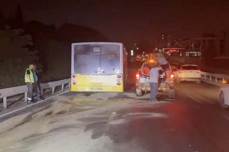 Bir süre trafiğe kapatılan yan yol, otomobil ve otobüsün kaldırılmasının ardından ulaşıma açıldı.