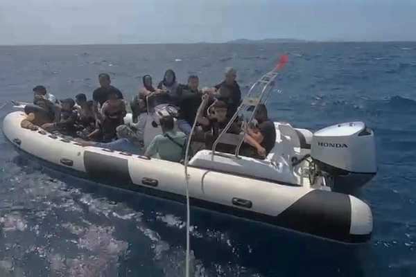 Aydın’ın Didim ilçesi açıklarında, 2’si çocuk olmak üzere 15 düzensiz göçmen Sahil Güvenlik ekiplerince kurtarıldı. Didim ve Kuşadası açıklarında lastik bot ve can sallarıyla Yunanistan’a geçmeye çalışan göçmenlere yönelik çalışmalar aralıksız sürüyor. Gelen ihbar üzerine Didim açıklarında harekete geçen ekipler, lastik bot içerisindeki düzensiz göçmen grubunu tespit etti. Bunun üzerine bölgeye Sahil Güvenlik Botu sevk edildi. Kısa sürede bölgeye varan ekipler, Yunanistan unsurlarınca Türk Karasularına geri itilen fiber karinalı lastik bot içerisindeki 2'si çocuk 15 düzensiz göçmeni kurtardı. Gerekli işlemlerinin ardından kurtarılan göçmenler, Düzensiz Göçmen Ön Kabul ve Sevk Merkezi'ne (GÖKSEM) gönderildi.