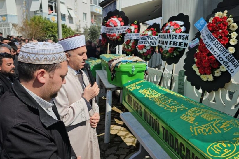 Aydın'ın Nazilli ilçesinde dün yangında hayatını kaybeden anne ve 2 çocuğu gözyaşlarıyla son yolculuğuna uğurlandı. Yürek yakan cenaze töreninde itfaiye erinin mesai arkadaşları, yakınları, protokol üyeleri ve yüzlerce vatandaş acıya ortak oldu.