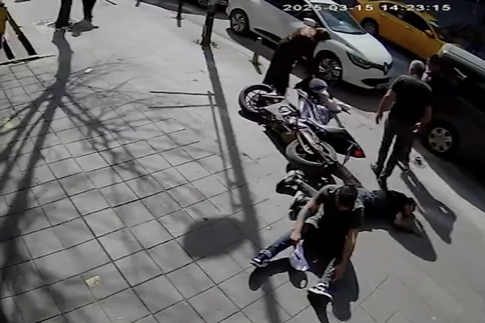 Bahçelievler'de kaldırımda ilerleyen motosikletin neden olduğu ve üç kişinin yaralandığı kaza anı, güvenlik kamerasınca kaydedildi.Şirinevler Mahallesi Mahmutbey Caddesi'nde kaldırımda hızla ilerleyen motosiklet, yürüyen kadına çarptı.Kazada, motosiklet sürücüsü ve arkasındaki kişi ile yaya yaralandı.