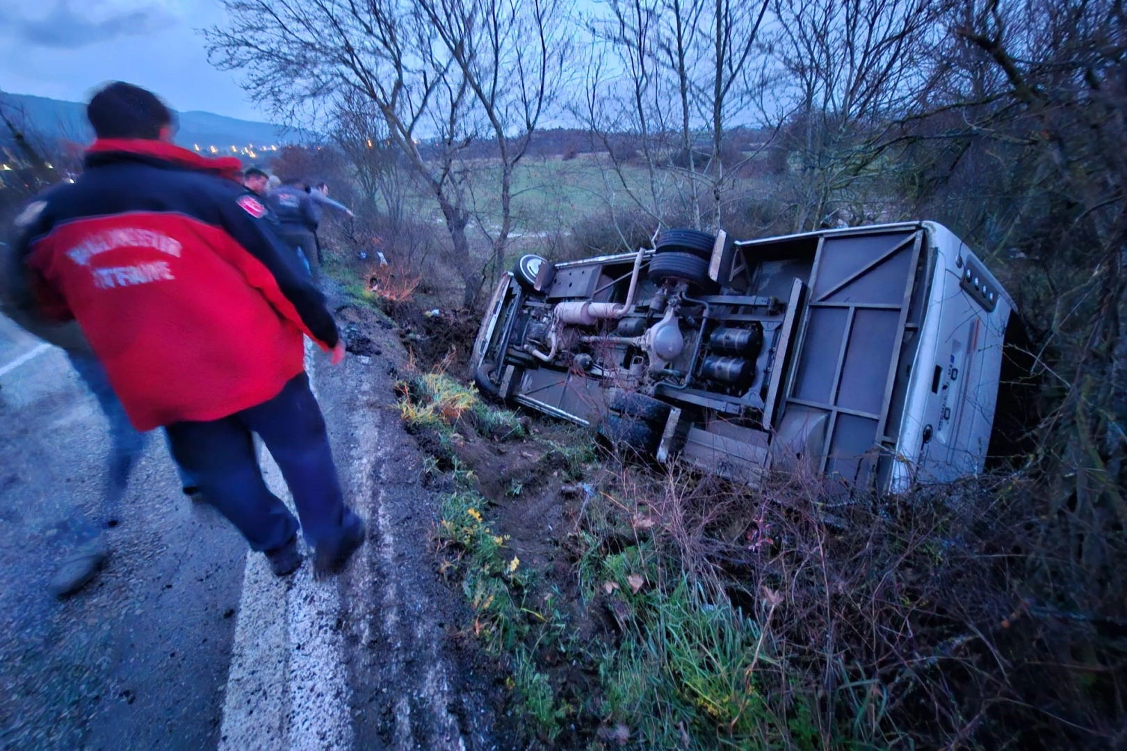 14 KİŞİ HASTANEYE KALDIRILDIÇevredeki vatandaşların ihbarı üzerine kaza mahalline çok sayıda itfaiye, jandarma ve 112 Acil Sağlık ekibi sevk edildi. Araç içerisinde bulunan toplam 19 kişi, Balıkesir Büyükşehir Belediyesi İtfaiye Daire Başkanlığı ekipleri ve sağlık personellerinin koordineli çalışmasıyla tahliye edildi. Sağlık ekiplerinin olay yerinde yaptığı ilk kontrollerin ardından, çeşitli yerlerinden yaralandığı tespit edilen 14 kişi ambulanslarla çevredeki hastanelere sevk edildi.