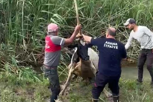 Adana’da sulama kanalında oluşan bataklığa saplanarak mahsur kalan inek itfaiye tarafından vinç yardımıyla kurtarıldı.Alınan bilgiye göre, Sarıçam ilçesine bağlı Kürkçüler Mahallesinde bir inek sulama kanalında oluşan bataklığa saplandı. Çevredeki vatandaşlar mahsur kalan ineği görünce durumu 112 Acil Çağrı Merkezine bildirdi. Merkez bölgeye itfaiye ekiplerini sevk etti. Bölgeye ulaşan ekipler, bataklıkta hareket edemeyen ve her geçen dakika daha da çamura gömülen hayvanı, vinç yardımıyla bulunduğu yerden çıkardı. Zamanla yarışılan kurtarma operasyonu sırasında ineğin zarar görmemesi için özel halatlar kullanıldığı ifade edildi. İneğin sağlık durumunun iyi olduğu belirtildi.Mahalle sakinleri, başarılı kurtarma çalışması nedeniyle itfaiye ekiplerine teşekkür etti.