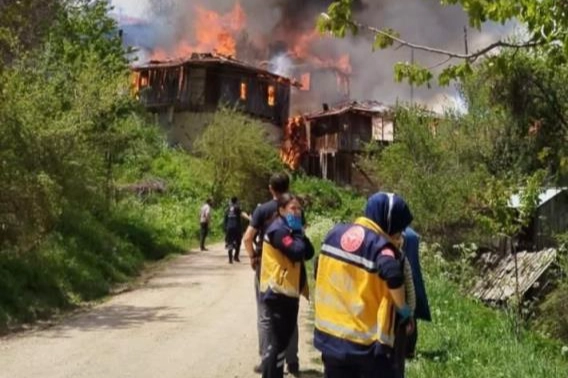 Bolu’nun Göynük ilçesine bağlı Bekirfakılar köyünde çıkan yangında 2 ahşap ev ve 1 cami alevlere teslim oldu. Yangın kontrol altına alınırken, bölgede soğutma çalışmaları sürüyor. Yangın, Göynük ilçesine bağlı Bekirfakılar köyünde meydana geldi. Edinilen bilgiye göre, henüz bilinmeyen bir nedenle başlayan yangın, kısa sürede büyüyerek bitişik durumdaki 2 ahşap evi ve köy camisinin tamamını sardı. Alevleri gören köy sakinlerinin ihbarı üzerine olay yerine Göynük Belediyesi İtfaiyesi, Orman İşletme Müdürlüğü'ne bağlı arazözler ve İlçe Özel İdare ekipleri sevk edildi. İtfaiye ekiplerinin uzun uğraşları sonucu yangın kontrol altına alındı. Yangında can kaybı yaşanmazken, evlerde ve camide büyük çapta maddi hasar meydana geldi.