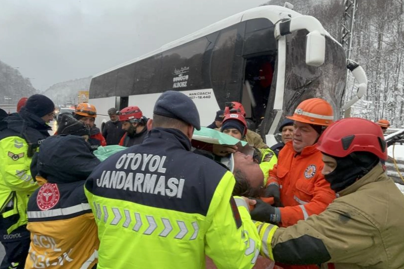 Kazayla ilgili inceleme başlatıldıKaza anını anlatan tır şoförü Baransel Karaca, "Kar nedeniyle sağ şerit kapalı, orta şerit kapalı, ben de arkadan sollamaya geçtim. Arkadan otobüs geldi, kayarak vurdu" dedi.