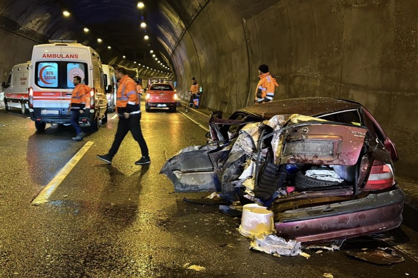 Bolu Dağı Tüneli içerisinde tırla çarpışması neticesinde hurdaya dönen otomobilde bulunan 5 kişi yaralandı.Kaza, saat 12.30 sıralarında TEM Otoyolu geçişi üzerindeki Bolu Dağı Tüneli içerisinde meydana geldi. Edinilen bilgiye göre, Ankara yönüne giden Orhan Gümüş idaresindeki 81 EM 044 plakalı çelik boru yüklü tır, önünde seyreden Savaş Yığın yönetimindeki 54 ATT 892 plakalı otomobile arkadan çarptı. Savrulan otomobil tünel içerisindeki yol kenarındaki beton kaldırıma çarptı. Meydana gelen kazada hurdaya dönen otomobilde 5 kişi yaralandı. Olay yerine sağlık, itfaiye ve jandarma ekibi sevk edildi.