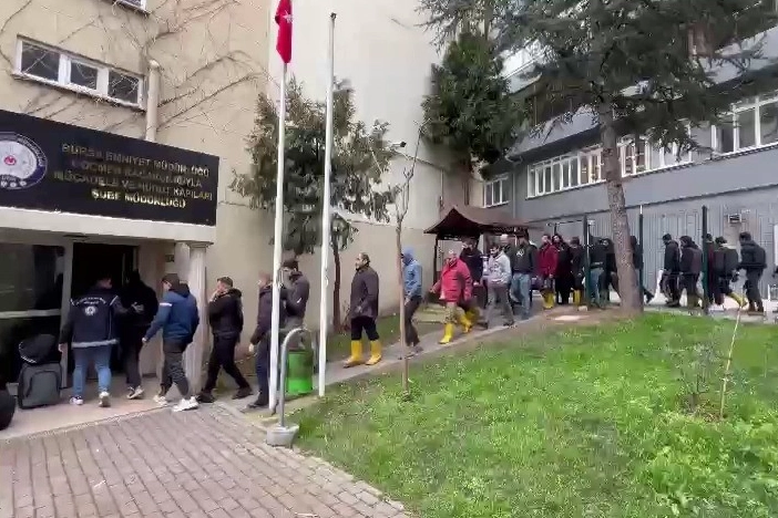 Bursa'da polis ekipleri tarafından düzenlenen operasyonda, yabancı uyruklu şahısları kaçak yollarla ülkeye getirip yer temin eden 4 şüpheli ile 47 kaçak göçmen yakalandı.Bursa Emniyet Müdürlüğü Göçmen Kaçakçılığıyla Mücadele ve Hudut Kapıları Şube Müdürlüğümüzce göçmen kaçakçılığı suçunun deşifre edilmesi, suç failleri ve organizatörlerinin yakalanmasına yönelik geniş kapsamlı çalışma başlattı. Titizlikle çalışan ekipler, 47 göçmenin Nilüfer ilçesi Çalı Mahallesi ve Yıldırım ilçesi Duaçınarı Mahallesi'nde çalıştırıldığını tespit etti. Göçmenlere yer temin edip iş ayarlayan H.K., M.K., M.Ö.K. ve S.K. 4 şüpheliyi yakalayan ekipler, iş yerlerine de yaptığı operasyonda 35'i kaçak, 12'si de farklı illere kayıtlı olmak üzere toplam 47 göçmen yakaladı. 35 kaçak göçmen sınır dışı edilirken, göçmenlere yer temin eden ve iş ayarlayan 4 organizatör gözaltına alındı.