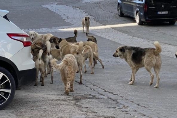 Tekirdağ'ın Çerkezköy ilçesinde gruplar halinde dolaşan başıboş sokak köpekleri, başka bir köpeği parçaladı.