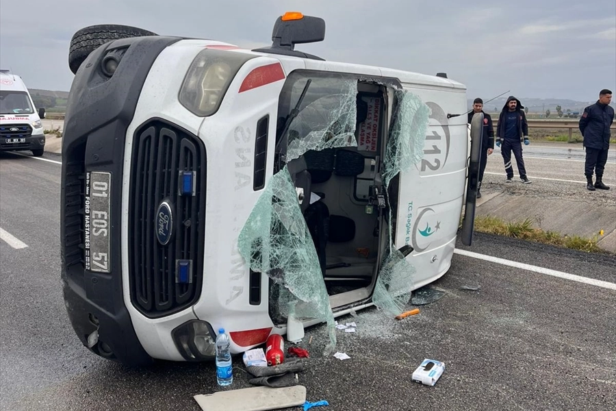 Adana'nın Ceyhan ilçesinde sabah saatlerinde meydana gelen trafik kazasında bir ambulans devrildi. Edinilen bilgilere göre, Ceyhan-Yumurtalık kara yolunda seyir halindeki ambulans, lastiğinin patlaması sonucu sürücüsünün direksiyon hakimiyetini kaybetmesiyle kontrolden çıktı. Bariyere çarpan araç, çarpmanın etkisiyle savrularak devrildi.