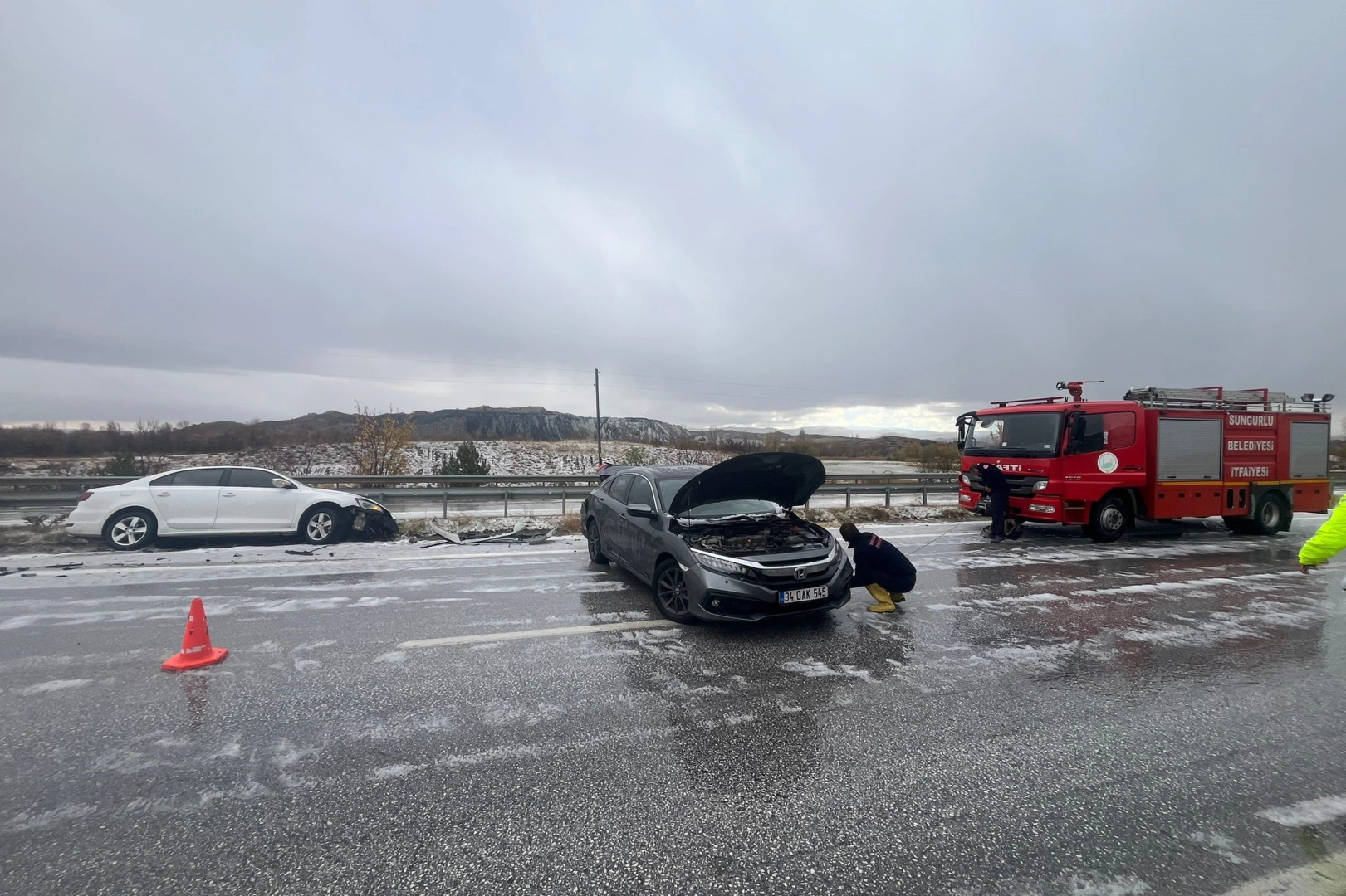 Çorum-Sungurlu istikameti 50. kilometresi Kırankışla köyü kavşağında kaza meydana geldi. Edinilen bilgiye göre, yoğun dolu yağışı nedeniyle Mustafa O. T. idaresindeki 34 DAK 545 plakalı otomobil, Harun T. yönetimindeki 19 AH 332 plakalı otomobil, Serhat Ş.’nin kullandığı 19 HS 544 plakalı otomobil ile Hamza A. yönetimindeki 55 ASR 61 plakalı cip, direksiyon hakimiyetlerini kaybederek çarpıştı. Çevrede bulunan vatandaşların ihbarı üzerine bölgeye sağlık, polis, jandarma ve itfaiye ekipleri sevk edildi. Ayrıca, Çorum-Sungurlu kara yolunun 10. kilometresinde ise Tevfik Ö. idaresindeki 19 ADR 483 plakalı otomobilde dolu nedeniyle kayganlaşan yolda bariyere çarparak durabildi. Kazalarda toplam 10 kişi yaralandı. Yaralılar, olay yerinde sağlık ekiplerince yapılan ilk müdahalenin ardından Sungurlu Devlet Hastanesi’ne kaldırıldı. Ekipler kazayla ilgili inceleme başlattı.