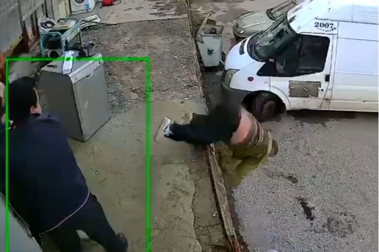 Denizli’de alkollü olduğu iddia edilen adam, arkadaşı ile arasından çıkan tartışma sonucunda arkadaşına bıçak çekti, ardından ise arbedede itilerek 2 metre uzunluğundaki duvardan düşerek ağır yaralandı. Olay anı bir iş yerinin güvenlik kamerasına anbean yansıdı.