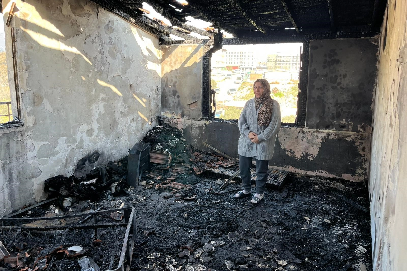 "Şu an evde oturulmaz, her şey yandı. Eşyalar ve battaniyeler hepsi yandı. Evde yaklaşık 100 bin TL param gitti. Benim; 10 bin TL, 100 dolar, yüzük, altın, elbiseler, yataklar, battaniyeler her şey yandı. Ablamın önce depremde evi yıkıldı, şimdi de evi yandı. Başka eve gitmek için kiralık ev bakıyorum. Bu duruma üzülüyoruz, dün gece uyuyamadık."