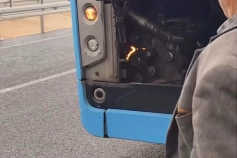 Motor kısmında çıkan arızada küçük çapta alev yükseldi. Otobüsten inen vatandaşlardan biri, yangını üfleyerek söndürmeye çalıştı.O anlar, bir vatandaş tarafından cep telefonu kamerasıyla çekildi. Çıkan yangının söndürüldüğü öğrenildi.