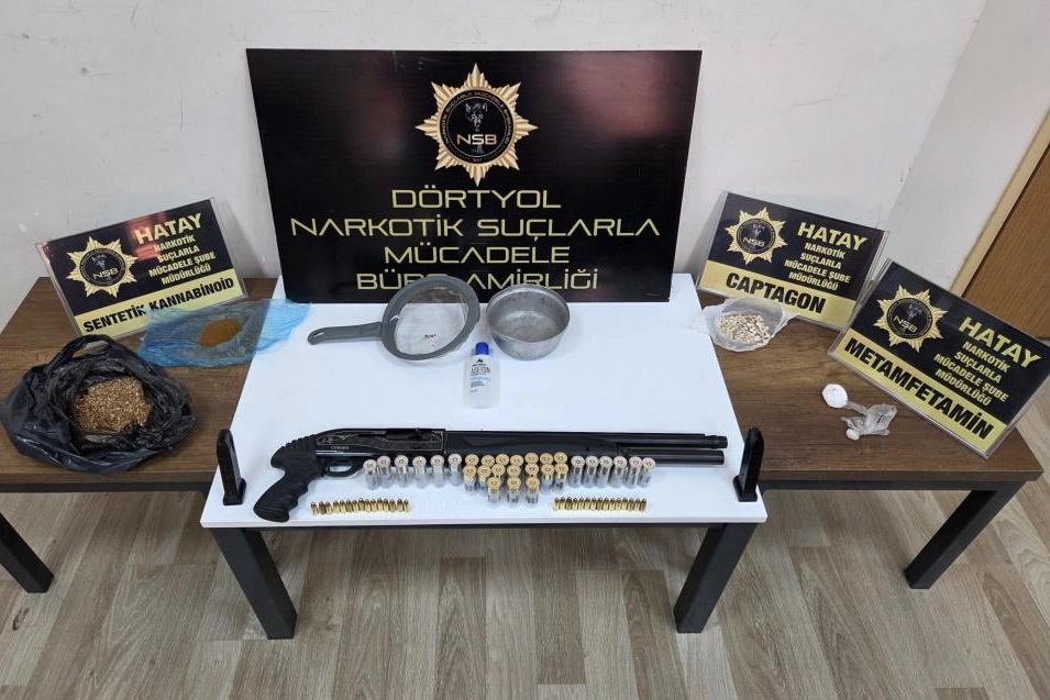 İkametlerde yapılan aramalarda; 265,93 gram Sentetik Kannabinoid, 11,51 gram Sentetik Kannabinoid Hammaddesi, 13 gram Metamfetamin, 116 adet Captagon hap, 2 adet Lyrica sentetik ecza, Sentetik Kannabinoid yapımında kullanılan 1 kutu aseton ve aparatları, 1 adet ruhsatsız av tüfeği, 2 adet şarjör, 30 adet Fişek, 29 adet Kartuş ve 7 adet ses fişeği ile dijital materyaller ele geçirildi.Ayrıca, yapılan çalışmalarda toplam 21 uyuşturucu kullanıcısı şahsa işlem yapıld