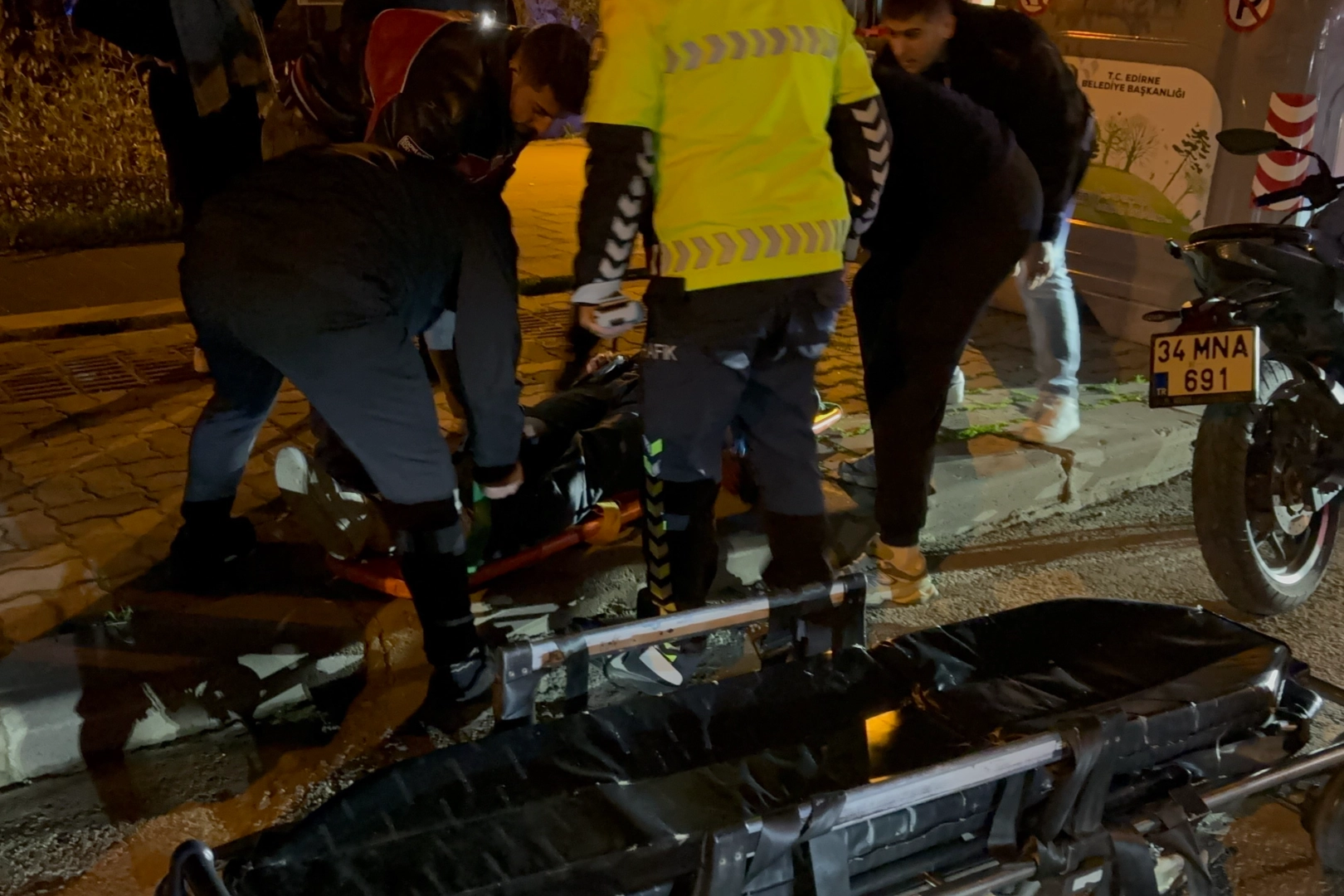 Edirne'de Muammer Aksoy Caddesi'nde kaza meydana geldi. Edinilen bilgiye göre, M.E.G. yönetimindeki 34 MNA 691 plakalı motosiklet ile İ.G. idaresindeki 22 RA 857 plakalı otomobil çarpıştı. Çarpışmanın etkisiyle yola savrulan motosiklet sürücüsü yaralandı. İhbar üzerine olay yerine polis ve sağlık ekipleri sevk edildi. Yaralı sürücü, sağlık ekiplerince yapılan ilk müdahalenin ardından ambulansla hastaneye kaldırıldı. Yapılan kontrollerde motosiklet sürücüsü M.E.G.'nin 1.30 promil alkollü olduğu tespit edildi. Sürücünün ehliyetine el konulurken, hakkında idari para cezası uygulandı. Polis ekipleri kazayla ilgili inceleme başlattı.