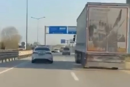 Bursa’nın İnegöl ilçesinde, manevralarıyla trafiği tehlikeye atan ve dur ihtarına uymayan TIR sürücüsü, bölge trafik ekiplerinin uzun süreli takibi sonucunda durduruldu. Kovalamaca anları başka bir sürücünün cep telefonu kamerasıyla kaydedildi.