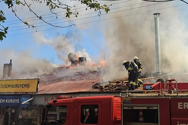 Erzincan’da tarihi Buğday Meydanı'nda sıralı dükkanların çatısında çıkan yangına müdahale ediliyor.Şehir merkezindeki Buğday Meydanı’nda bulunan tek katlı sıralı haldeki iş yerlerinin çatısında yangın çıktı.İhbar üzerine bölgeye itfaiye, polis ve sağlık ekipleri sevk edildi.İtfaiye ekipleri yangını kontrol altına almaya çalışıyor. Vali Hamza Aydoğdu da olay yerine gelerek ekiplerin çalışmasını takip etti.