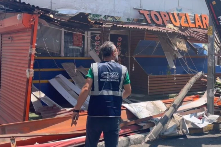 İstanbul Esenyurt’ta zabıta ve market çalışanları arasında bıçaklı kavgaya neden olan manav reyonu kepçeyle yıkıldı. İş yeri sahipleri ile zabıta ekipleri arasında ufak çaplı gerginlik yaşanırken, çevik kuvvet polislerinin müdahalesiyle yıkım tamamlandı.