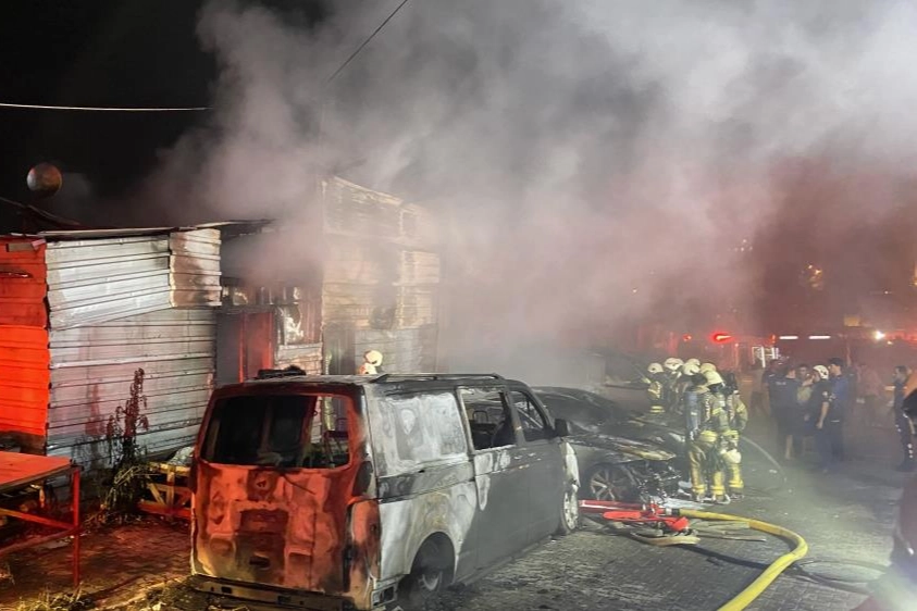 Esenyurt’ta gece saatlerinde sokak üzerinde bulunan 8 araç kimliği belirsiz bir kişi tarafından kundaklandı. Yangın daha sonra araçlardan depo olarak da kullanılan bir iş yerine sirayet etti. Alevlerin geceyi aydınlattığı yangın cep telefonu kameralarınca kaydedilirken, kundaklama anı ve şüphelinin kaçışı da güvenlik kameraları tarafından görüntülendi.