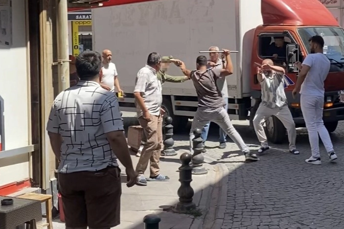 Kamyonu yumruklayan adamın kafasına demir sopayla vurduÇevre esnafı tarafları sakinleştirmeye çalıştı. Tüm çabalara rağmen sakinleştirilemeyen taksi yolcusu, kamyonu yumruklamaya başladı. Kamyonun içerisindeki 2 şahıs, kendilerine camdan yumruk ve poşet sallayan adama karşılık verdi. Araçtan inen kamyon şoförü, taksi yolcusuna demir sopa ile vurdu. Aldığı darbe sonucunda arkasındaki saksıya takılan taksi yolcusu yere düştü.