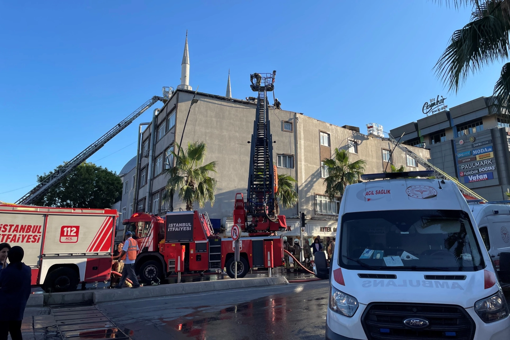 İstanbul Eyüpsultan'da, 4 katlı iş hanının çatısında yangın çıktı. Kısa sürede çatıyı saran alevler itfaiye ekiplerince söndürüldü. Yangın, saat 18.00 sıralarında İstanbul Eyüpsultan Alibeyköy Mahallesi Vardar Bulvarı üzerinde meydana geldi. Edinilen bilgiye göre, 4 katlı iş hanının çatı katında henüz belirlenemeyen bir sebeple yangın çıktı. Yangını gören esnaf ve çevredeki vatandaşlar 112 Acil Servise bildirdi. İhbar üzerine itfaiye, polis ve sağlık ekipleri sevk edildi. Alevler kısa sürede çatının büyük bir bölümünü sararken, yükselen dumanlar uzaktan da görüldü. Olay yerine gelen polis ekipleri güvenlik önlemleri alırken itfaiye ekipleri çatıda çıkan yangına müdahale etti. Ölü yada yaralının olmadığı yangının çıkış nedeni yapılacak incelemenin ardından belli olacak. Yangın nedeniyle çatıda büyük hasar oluştu. Öte yandan, çatının alev alev yandığı anlar ve dumanların uzaktan görüldüğü anlar cep telefonu kamerasına yansıdı. Yangını duyduktan sonra hemen doğalgaz kapattıklarını söyleyen esnaf Ümran Acabe, "Arkadaş geçti buradan çatıda yangın olduğunu söyledi. Toplamda beş dakika kadar sürdü. Hemen doğalgazı kapattık, binadaki insanları uyandırdık yani binayı boşalttık. Zaten gözüktüğü gibi çatı tamamen yandı. Camii tarafından ateşin başladığı söyleniyor. Esnaf arkadaşlar bina sakinleri hepimiz burada bir mağduriyet yaşadık. Allah'tan tek sevindiğimiz nokta can kaybımızın olmaması” dedi.