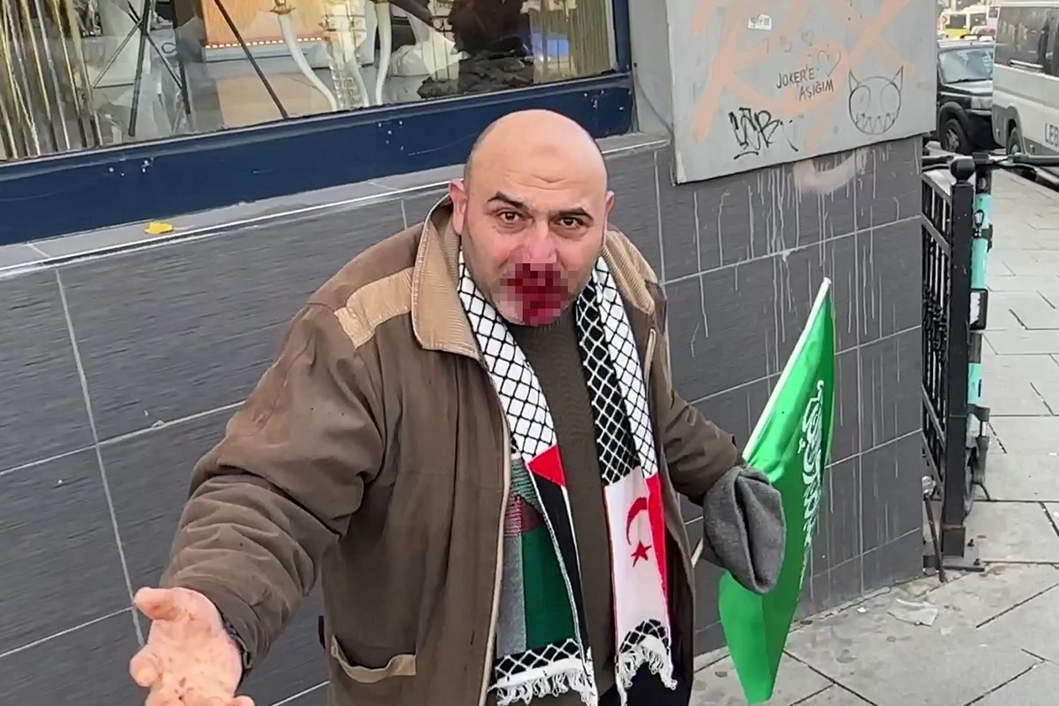 Galata Köprüsü'nde Filistin'e destek yürüyüşünden elinde Kelime-i Tevhid bayrağıyla dönen İsmail Aydemir'e, karşıdan gelen bir şahıs "Siz Arap sevicisiniz" diyerek yumruk attı. Yumruklu saldırıda İsmail Aydemir’in yüzü kanlar içinde kalırken, kavgayı gören diğer vatandaşlar ikiliyi ayırmaya çalıştı. Polisin olay yerine gelmesiyle kavga son bulurken Aydemir, polis tarafından kontrol amacıyla Taksim İlkyardım Hastanesi’ne, daha sonra da ifadesi alınmak üzere emniyete götürüldü. Saldırgan ise Kasımpaşa karakoluna götürüldü.