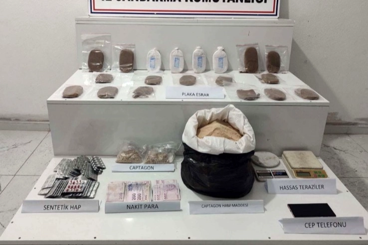Gaziantep İl Jandarma Komutanlığı Narkotik Şube Müdürlüğü, İstihbarat Şube Müdürlüğü ve Şehitkâmil İlçe Jandarma Komutanlığı ekipleri ve Cumhuriyet Başsavcılığı koordinesinde uyuşturucu ve uyarıcı madde ile mücadeleye yönelik operasyon yapıldı. Operasyon çerçevesinde, uyuşturucu ticareti yaptığı tespit edilen E.E.N. isimli şahıs Şahinbey ilçesinde, A.A. isimli şahıs ise Şehitkâmil ilçesinde yakalandı. Şahısların işyerinde ve ikametinde yapılan eş zamanlı aramalarda 22 kilogram reçine esrar maddesi, 125 bin adet captagon hap imal edilebilecek 22 kilogram hammadde, 7 bin 500 adet captagon hap, 2 bin 938 adet sentetik hap, 2 adet hassas terazi ile 6 bin 430 TL suçtan elde edilen para ele geçirildi. Gözaltına alınan E.E.N. ve A.A. isimli şüpheliler, çıkarıldığı adli makamlarca tutuklanarak cezaevine teslim edildi.
