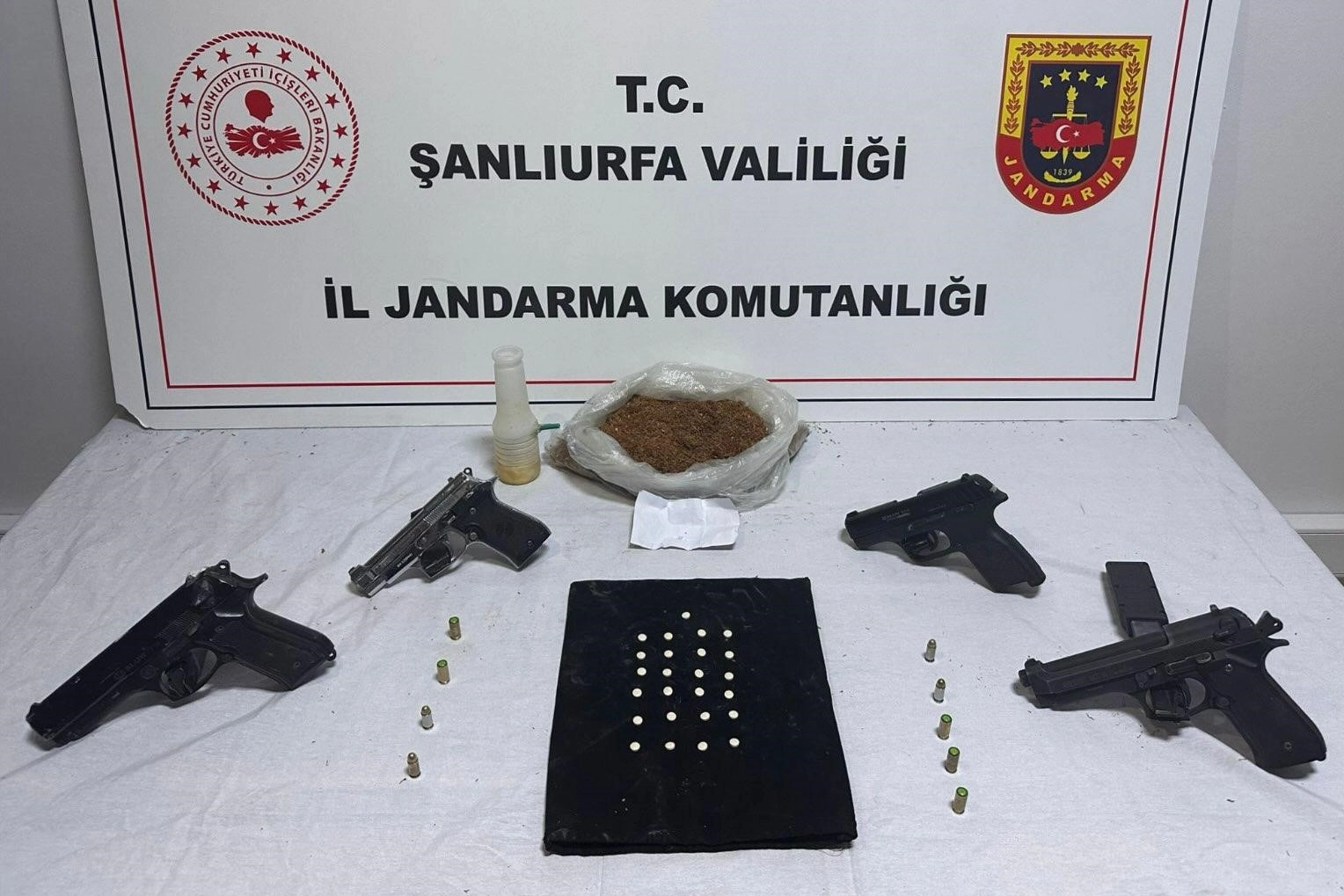 Şanlıurfa İl Jandarma Komutanlığı Narkotik Suçlarla Mücadele Şube Müdürlüğü ekipleri ise Haliliye İlçe Jandarma Komutanlığı ekipleri, uyuşturucu madde ve ruhsatsız silah operasyonu gerçekleştirdi. Operasyonda 3 zanlı gözaltına alınırken yapılan aramalarda ise 25 adet sentetik ecza hapı, 500 gram amfetamin maddesi ile karıştırılmış tütün, 1gram metamfetamin maddesi, 2 adet ruhsatsız tabanca, 2 adet kurusıkı tabanca, 4 adet tabanca şarjörü, 8 adet farklı tür ve ebatlarda fişek ele geçirildi.