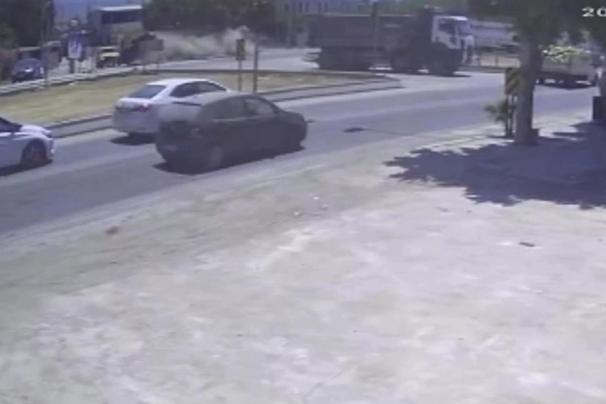 Hatay'ın Arsuz ilçesinde meydana gelen kazada kontrolden çıkan bir otomobil, orta refüje çarptıktan sonra havada metrelerce uçtu ve park halindeki 2 araca çarparak durabildi. Araç sürücüsünün yaralandığı kaza anbean güvenlik kamerasına yansıdı.